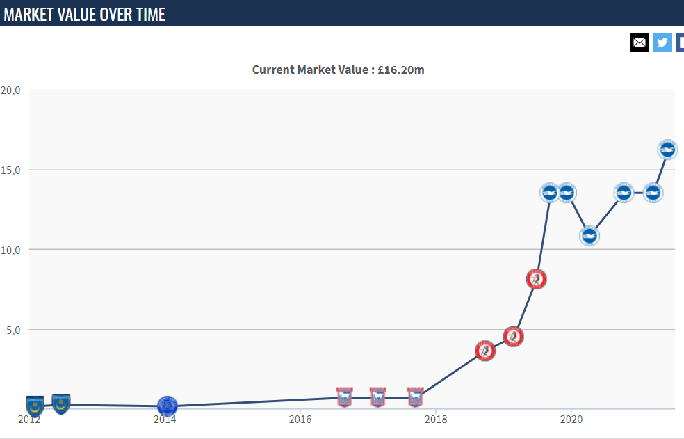 I will have to note a few certain points for this. The Market Value of each player is an estimation on how much a player would be worth if sold, and not what a club would sell the certain player for. As an example, Adam Webster had a Market Value of just over £8,000,000; whilst City sold the defender to Brighton and Hove Albion for £20,000,000. Whilst Jay Dasilva has remained the same value since his permanent signing.