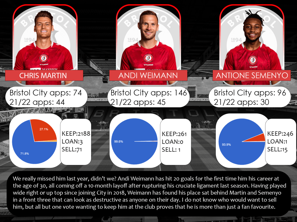 I recently ran a survey on my social media, for Bristol City fans to complete to get a wide view on how the fans see the current squad, and whether they would keep them at the club for the 2022/23 season.