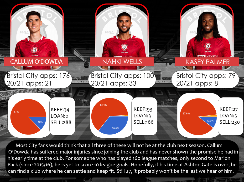 Most City fans would think that all three of these will not be at the club next season. Callum O’Dowda has suffered major injuries since joining the club and has never shown the promise he had in his early time at the club. For someone who has played 160 league matches, only second to Marlon Pack (since 2015/16), he is yet to score 10 league goals. Hopefully, if his time at Ashton Gate is over, he can find a club where he can settle and keep fit. Still 27, it probably won’t be the last we hear of him.