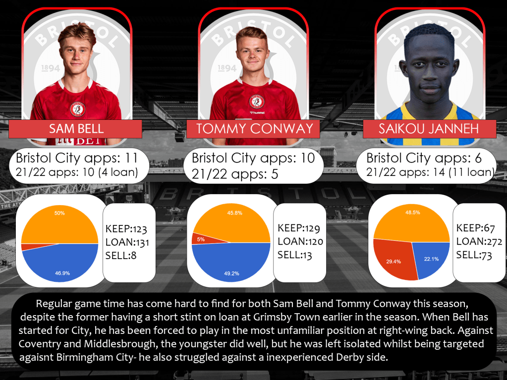 Regular game time has come hard to find for both Sam Bell and Tommy Conway this season, despite the former having a short stint on loan at Grimsby Town earlier in the season. When Bell has started for City, he has been forced to play in the most unfamiliar position at right-wing back. Against Coventry and Middlesbrough, the youngster did well, but he was left isolated whilst being targeted against Birmingham City- he also struggled against an inexperienced Derby side.